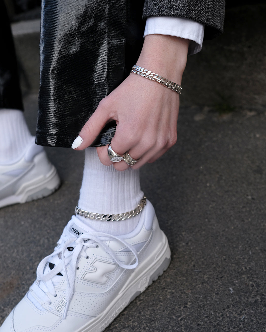 I have 5 rings that are placed in the exact same spot every day. In addition to those, I always wear earrings and at least two necklaces in a stacked fit - this is something Camille Brinch has inspired me to.